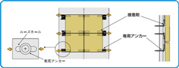特殊基盤は下地材(躯体、構造体)に専用アンカー等で機械的に固定します。