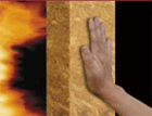 アルセコに採用されている「ミネラルウール・ラメラ」は、 100%不燃の断熱材です。 |